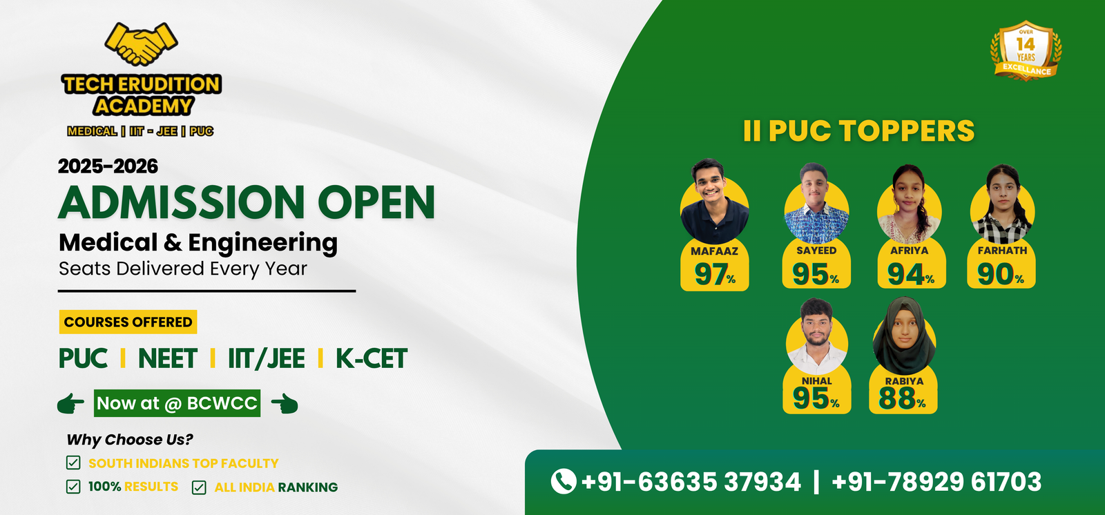 Tech Erudition Academy is dedicated to guiding students towards academic success and competitive exam excellence. With a focus on NEET, KCET, and school board exams for classes 10th, 11th, and 12th, we combine expert teaching, personalized guidance, and a results-driven approach. Our mission is to help every student understand concepts deeply, build confidence, and achieve their highest potential.
