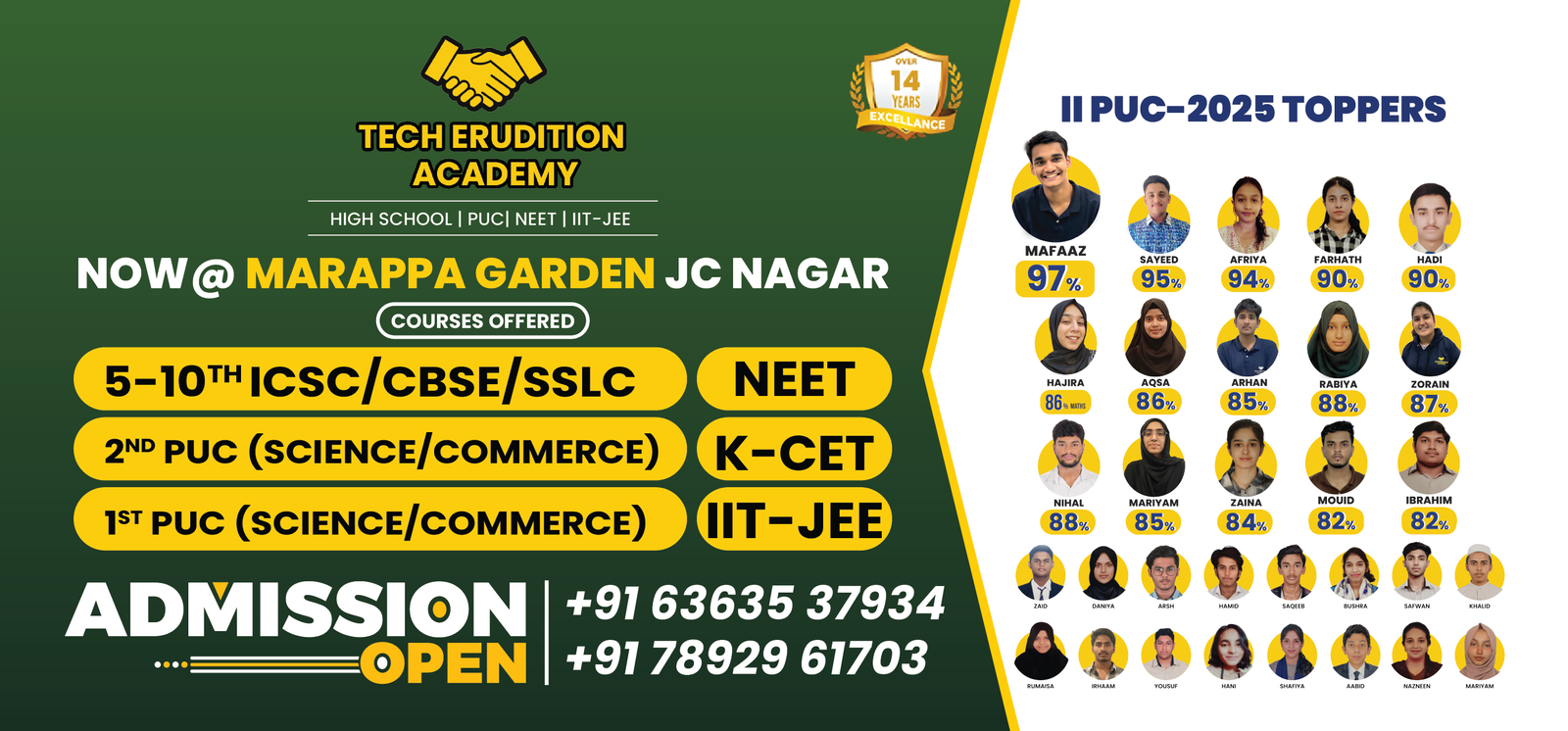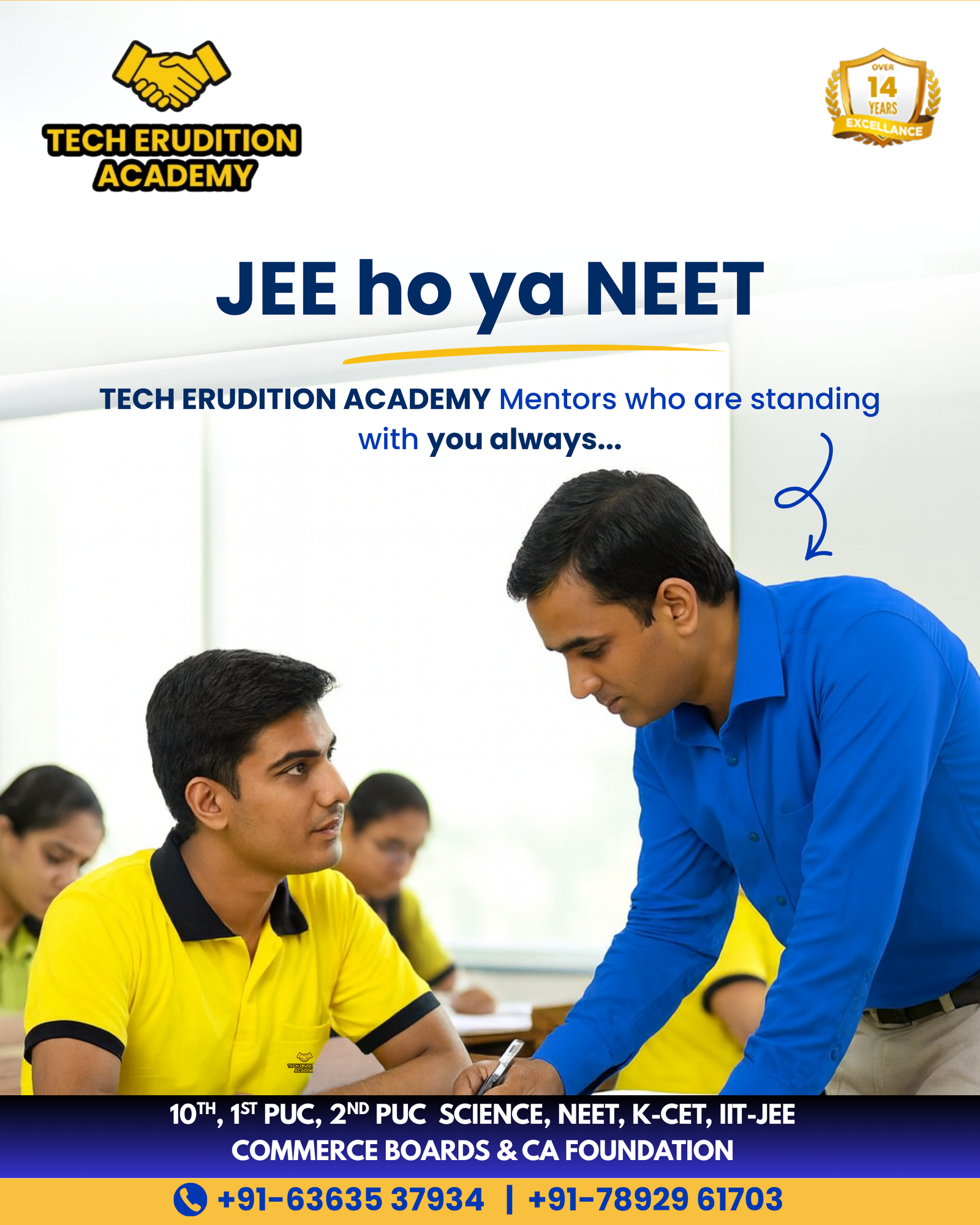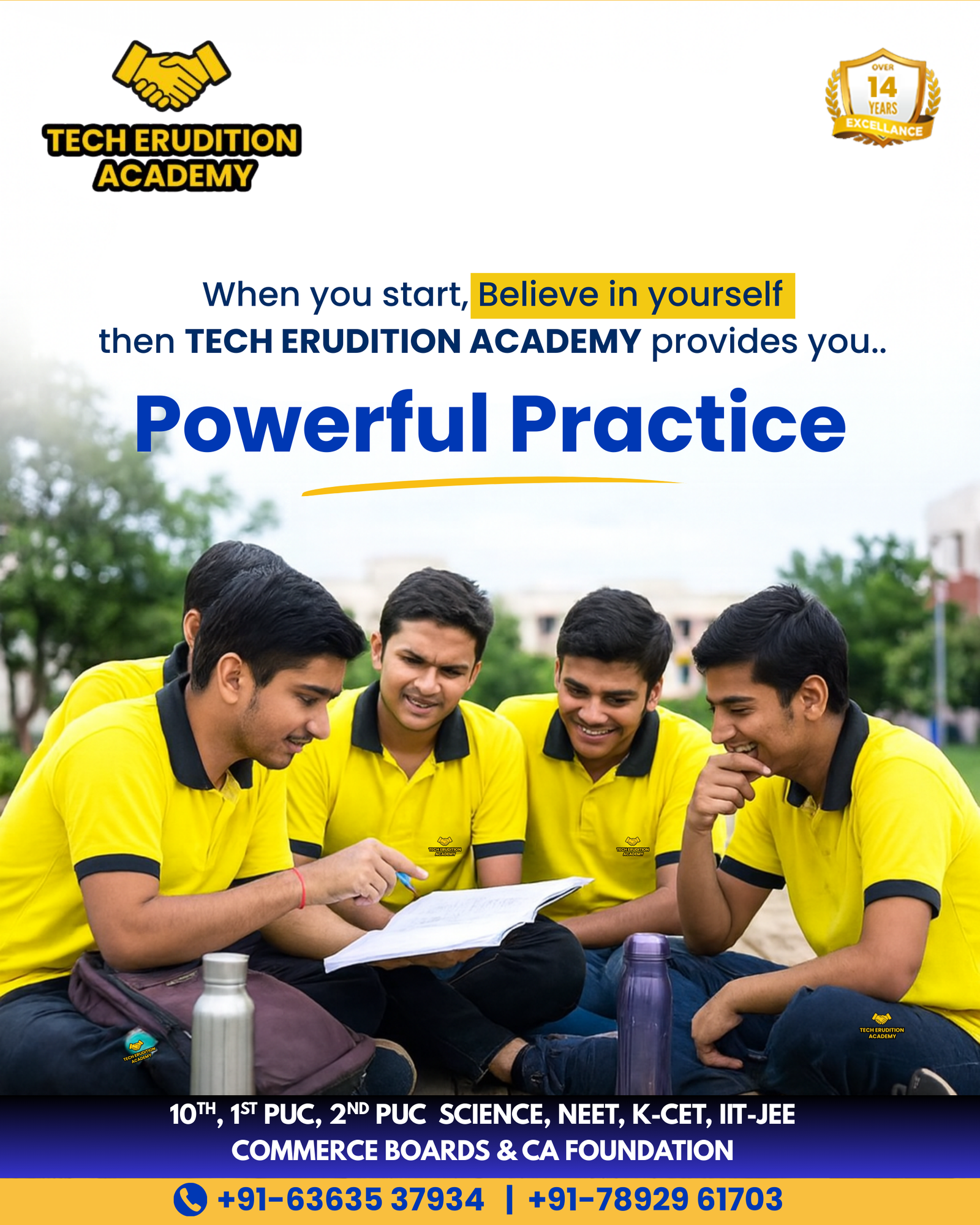 Tech Erudition Academy is dedicated to guiding students towards academic success and competitive exam excellence. With a focus on NEET, KCET, and school board exams for classes 10th, 11th, and 12th, we combine expert teaching, personalized guidance, and a results-driven approach. Our mission is to help every student understand concepts deeply, build confidence, and achieve their highest potential.